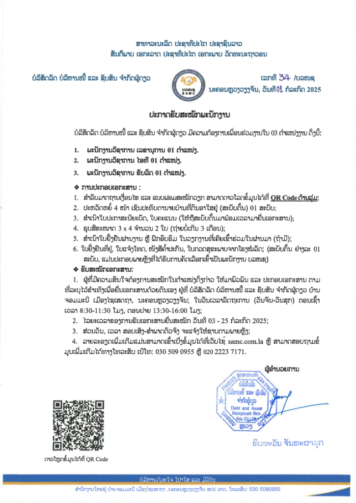 ປະກາດຮັບສະໝັກພະນັກງານ